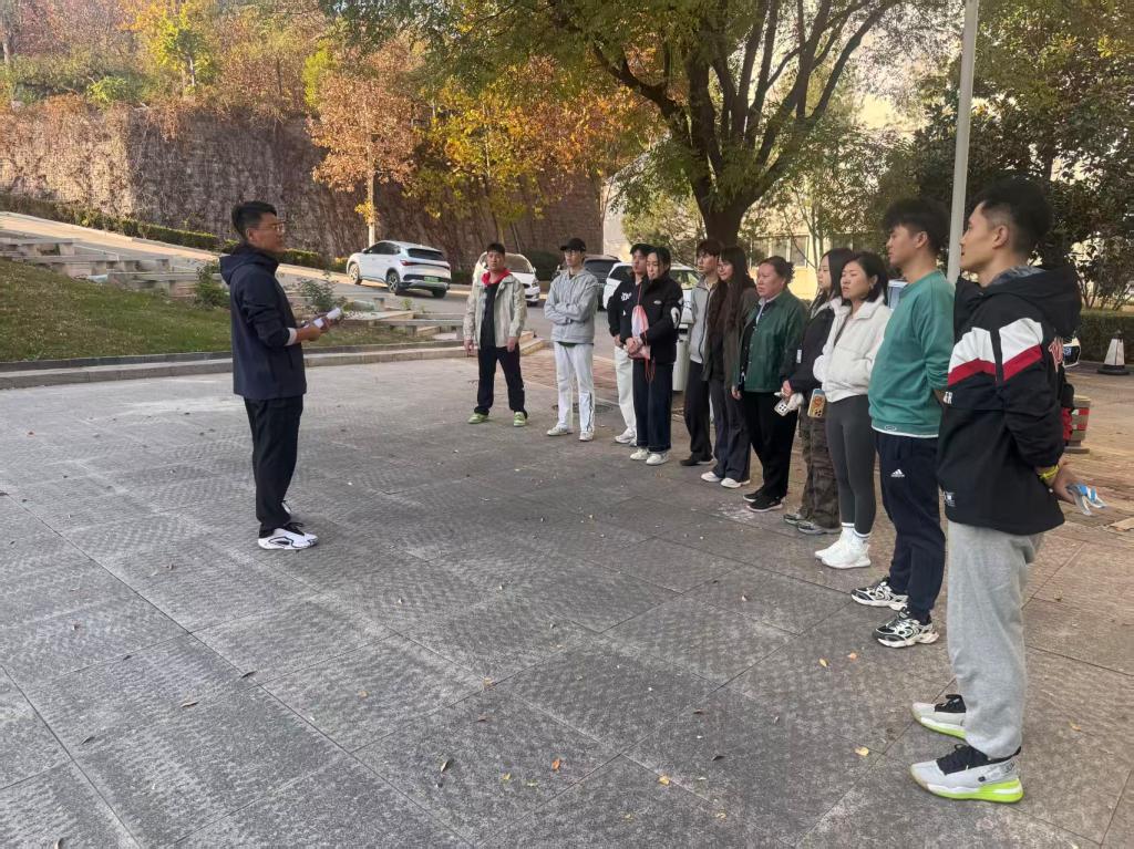 2025年11月6日下午2点30分,体育教学部在文体馆前广场开展消防宣传月专项活动。教学部副主任李剑、安全员黄少凯,全体外包人员及各场地管理人员参与。